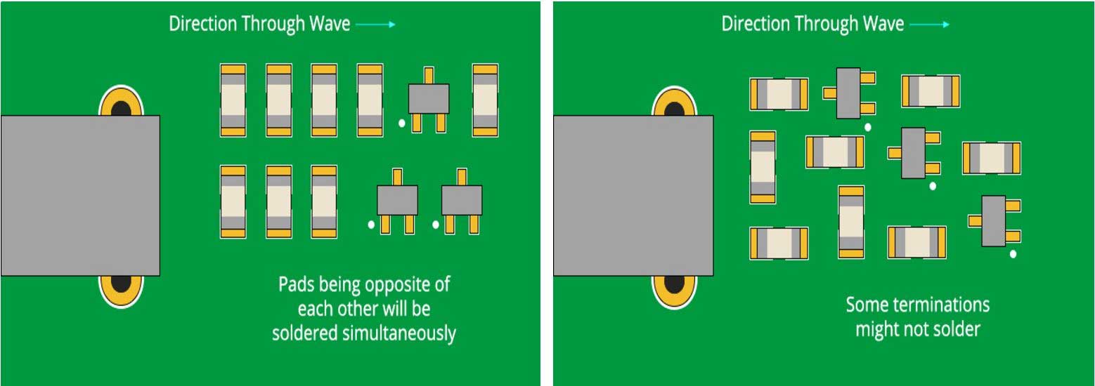 良好組件方向()和糟糕芯片元件方向()